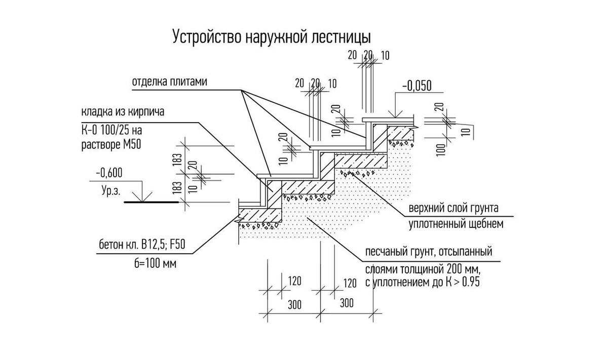 Увидел вот такое решение в одном из проектов. Это чертеж наружной лестницы, ведущей на крыльцо жилого дома.