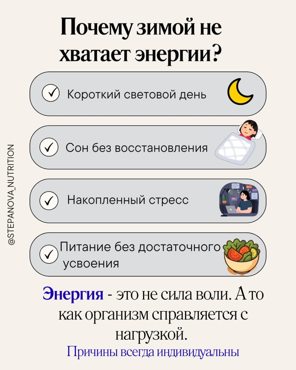 Зимой я часто вижу один и тот же запрос от женщин — вроде бы ничего критичного не происходит, но сил становится всё меньше, знакомо?