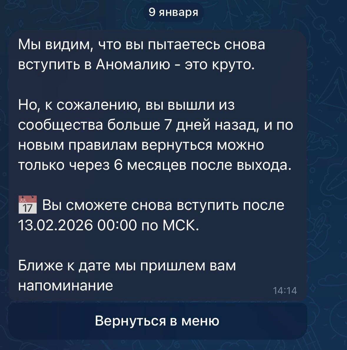 Пытался как-то зайти в комьюнити Гребенюка. Зашёл, отдал 5к, а получил, по сути, просто базу знаний: вещи очевидные, которые и так знал или мог найти в открытом доступе. В целом кое-что было занятно, но на тот момент ценности для себя не увидел. Ну и отписался. Думал, что если понадобится, то вернусь. И вот в новом году с новой стратегией появилась необходимость в нетворкинге, и я вспомнил про тамошнее комьюнити. Решил вернуться, а там… такой интересный ход! Вроде бы клиент хочет вернуться, и нужно максимально упростить задачу, да? А тут — движение в обратном направлении… и чёрт, классно же! В прошлый раз отписался, потому что не видел ценности. А сейчас, даже если вернусь и снова ценности не получу, уже десять раз подумаю, стоит ли отписываться.