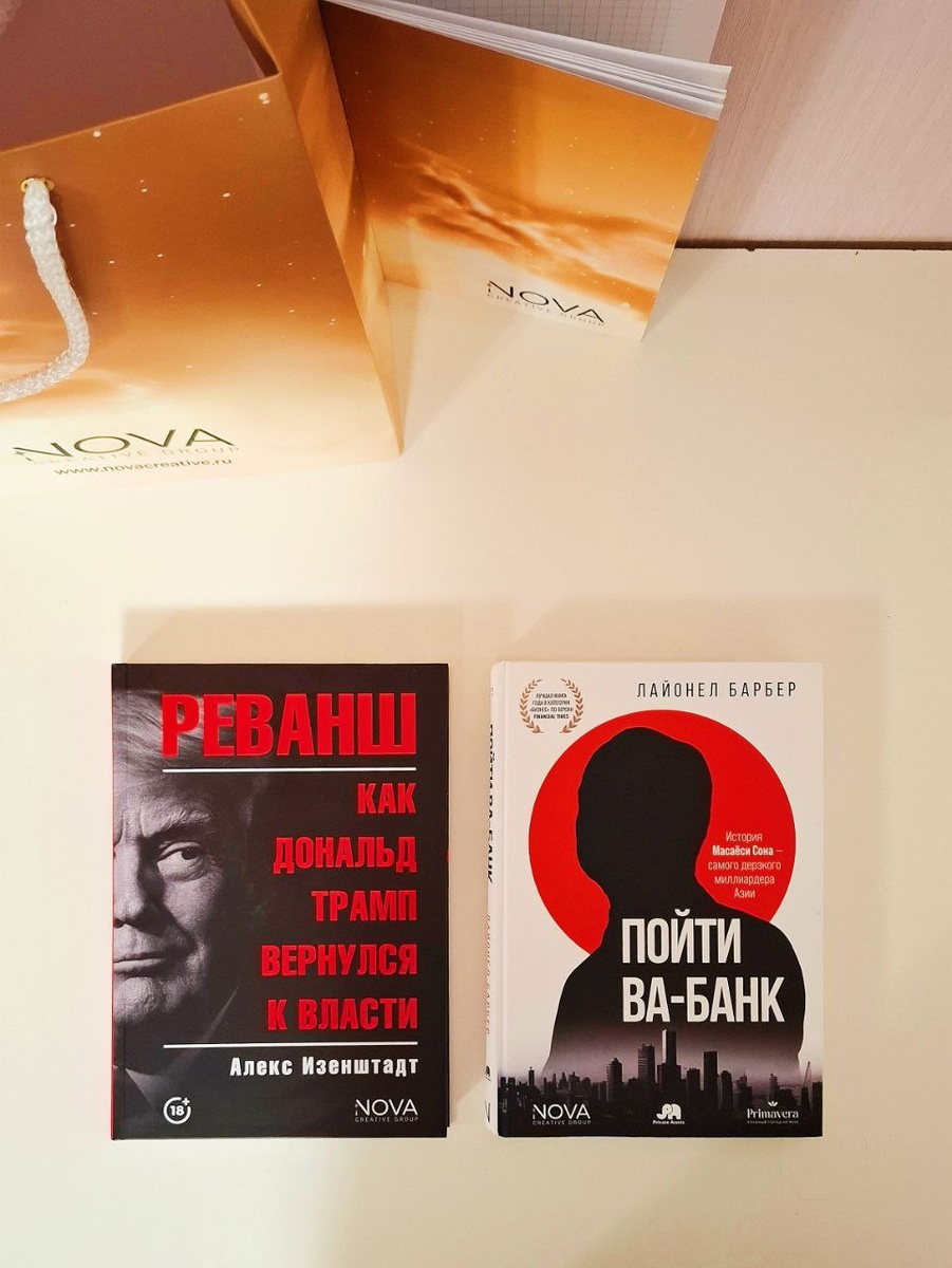 ! Это не просто книги, а два мощнейших заряда про деньги, власть и людей, которые меняют мир. И я в полном восторге! 📘 Лайонел Барбер. Пойти Ва-Банк. История Масаёси Сона – самого дерзкого миллиардера Азии. Экс-главред Financial Times Лайонел Барбер провёл феноменальное расследование, чтобы раскрыть тайны загадочного Масаёси Сона, одного из самых влиятельных инвесторов в мире. Книга о том, как можно много раз проигрывать и каждый раз подниматься, чтобы снова поставить всё на кон. 📗 Алекс Изенштадт. Реванш. Как Дональд Трамп вернулся к власти. Книга-расследование о закулисных механизмах большой политики, интригах, борьбе за власть и феномене личности, которая никого не оставляет равнодушным. 📒Вместе с книгами пришёл стильный блокнот: пригодиться, чтобы записывать свои мысли после погружения в мир большой политики и крутых миллиардеров. А вам какая тема ближе — головокружительные взлёты и падения титанов бизнеса или закулисные игры мировой политики? Или, может, вы уже читали одну