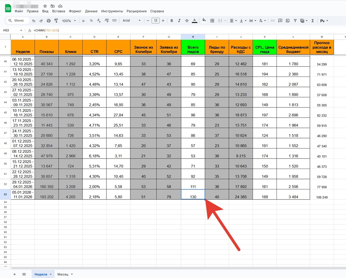 3) Цена лида: 188р. У нас за неделю в среднем 75-80 лидов, а тут 130!