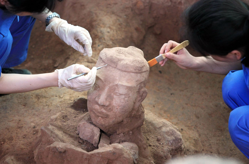 На месте раскопок были обнаружены нефритовые вазы, золотые украшения, бронзовая посуда и оружие, а также лепнина с изображениями драконов.
