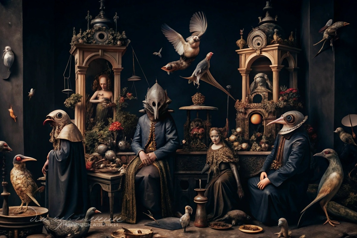 — Мастер! — запыхавшись, выпалил юноша. — Опять заказчики из гильдии виноделов! Хотят фреску с ангелочками, собирающими виноград! Сказали, если будут хоть малейшие отклонения от канона, не заплатят! Иероним вздохнул так глубоко, что с полки слетел засушенный василиск. И тут его взгляд упал на испуганное лицо Корнелиуса, искажённое гримасой ужаса перед гневом мастера. И в голове что-то щёлкнуло. — Знаешь что, Корни? — сказал Босх, а в его глазах зажглись весёлые огоньки. — Отклонения от канона? Я им покажу отклонения! Мы им напишем не сбор винограда, а отжим. И ангелочки пусть будут… ммм… с похмелья. Один пусть сидит на бочке, держась за голову. Другой пусть измеряет градус а