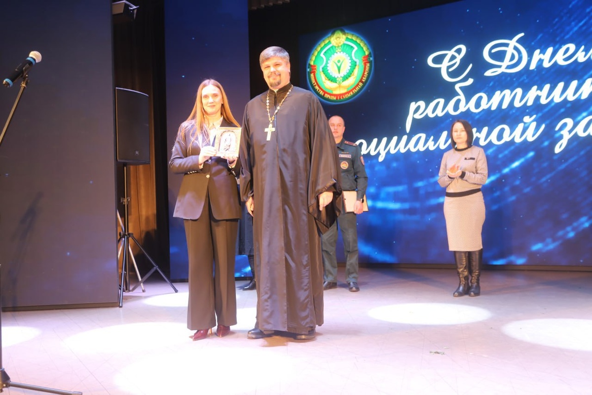 В торжестве приняли участие представители районной власти, руководители служб и ведомств, а также представители общественных объединений.В числе почетных гостей на сцену районного центра культуры вышел и благочинный Смолевичского церковного округа, настоятель прихода храма Минской иконы Божией Матери иерей Никодим Пашков. Священнослужитель поздравил собравшихся с профессиональным и праздником и отметил, что основа социальной работы — любовь и милосердие, готовность прийти на помощь и разделить радость и печаль. Отец Никодим пожелал труженикам этой сферы сил, терпения и помощи Божией в их нелегком служении, и вручил начальнику управления по труду, занятости и социальной защите Илоне Гриневецкаой икону Архангела Михаила. На мероприятии состоялось награждение лучших работников социальной сферы. На сцену поднимались ветераны отрасли, молодые специалисты, а также семейные династии.