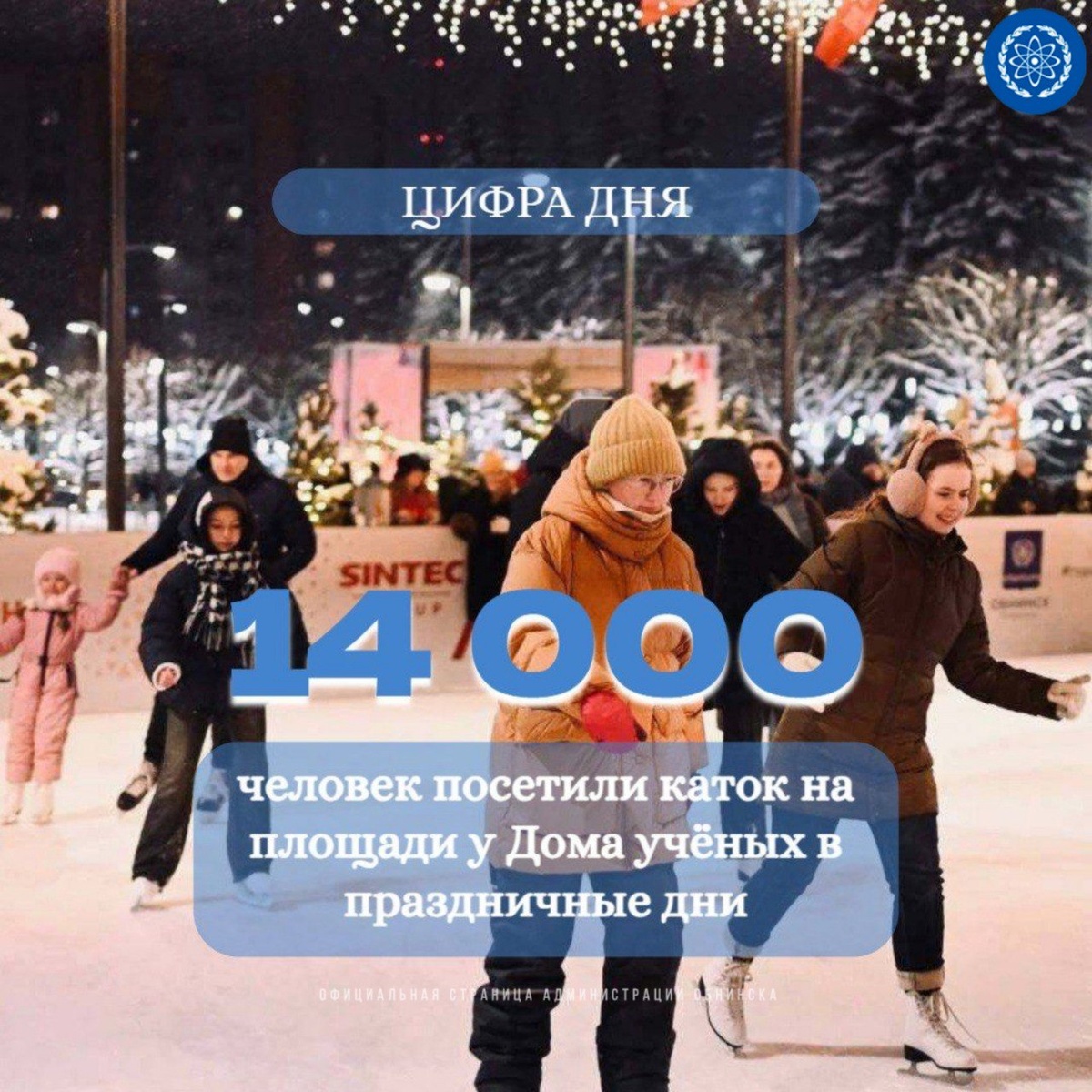Традиционный каток под открытым небом на площади у Дома учёных – одно из самых любимых мест отдыха жителей Обнинска в зимнее время. За праздничные дни здесь побывали порядка 14 000 человек. Сколько счастья, смеха, красивых фотографий и приятных воспоминаний! Бесплатный каток продолжит радовать посетителей до марта. Если у вас нет своих коньков – ничего страшного, есть прокат. График работы: ❄️ понедельник-четверг, воскресенье – с 10:00 до 22:00 ❄️ пятница и суббота – с 9:00 до 23:45 Ждём вас на льду!