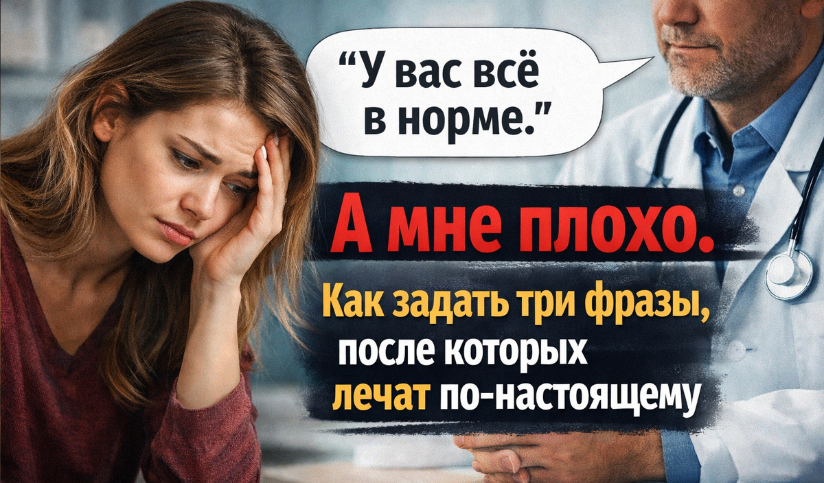 Если хоть раз выходила из кабинета врача с фразой «анализы в норме, а мне всё равно плохо» эта статья для тебя. И дело не в невезении. Система лечения в ОМС устроена так, что пациент часто остаётся без объяснений и без реального плана. Но есть способ разговаривать с врачом так, что он сам начинает искать решение. И это не про грубость, а про взрослый диалог.