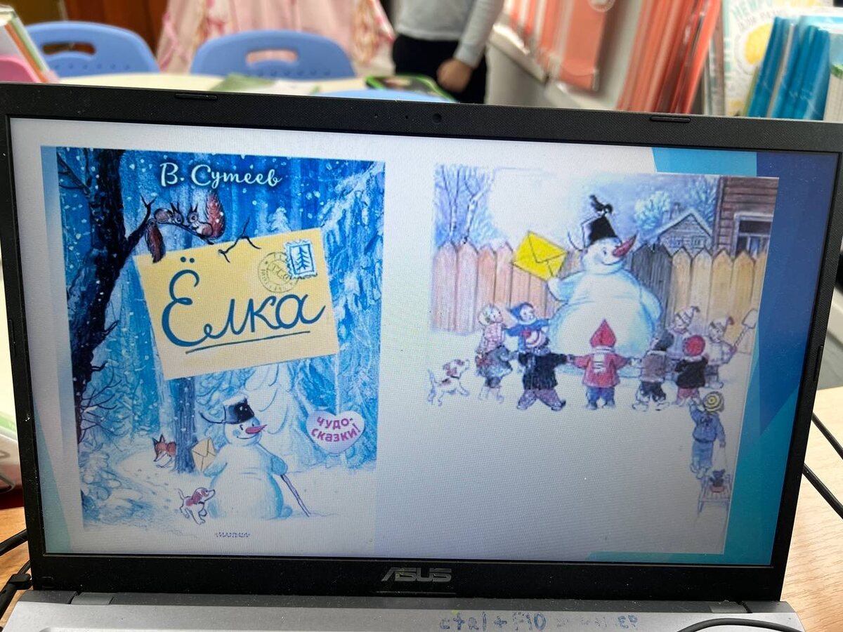 Сегодня ученики 1 «А» окунулись в зимнюю сказку: читали и слушали добрую историю Владимира Сутеева «Ёлка