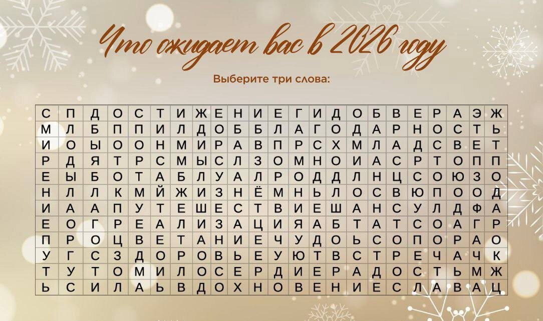? ✨ Сегодня Старый Новый год. Тёплая пауза, когда можно заглянуть внутрь себя. Посмотрите на картинку. Найдите первые три слова, которые сразу бросились в глаза. Чтение — по горизонтали, по вертикали. Это интуиция. Про ваше состояние сейчас. Про то, к чему вы готовы на ближайший год. Напишите свои три слова в комментариях ✨