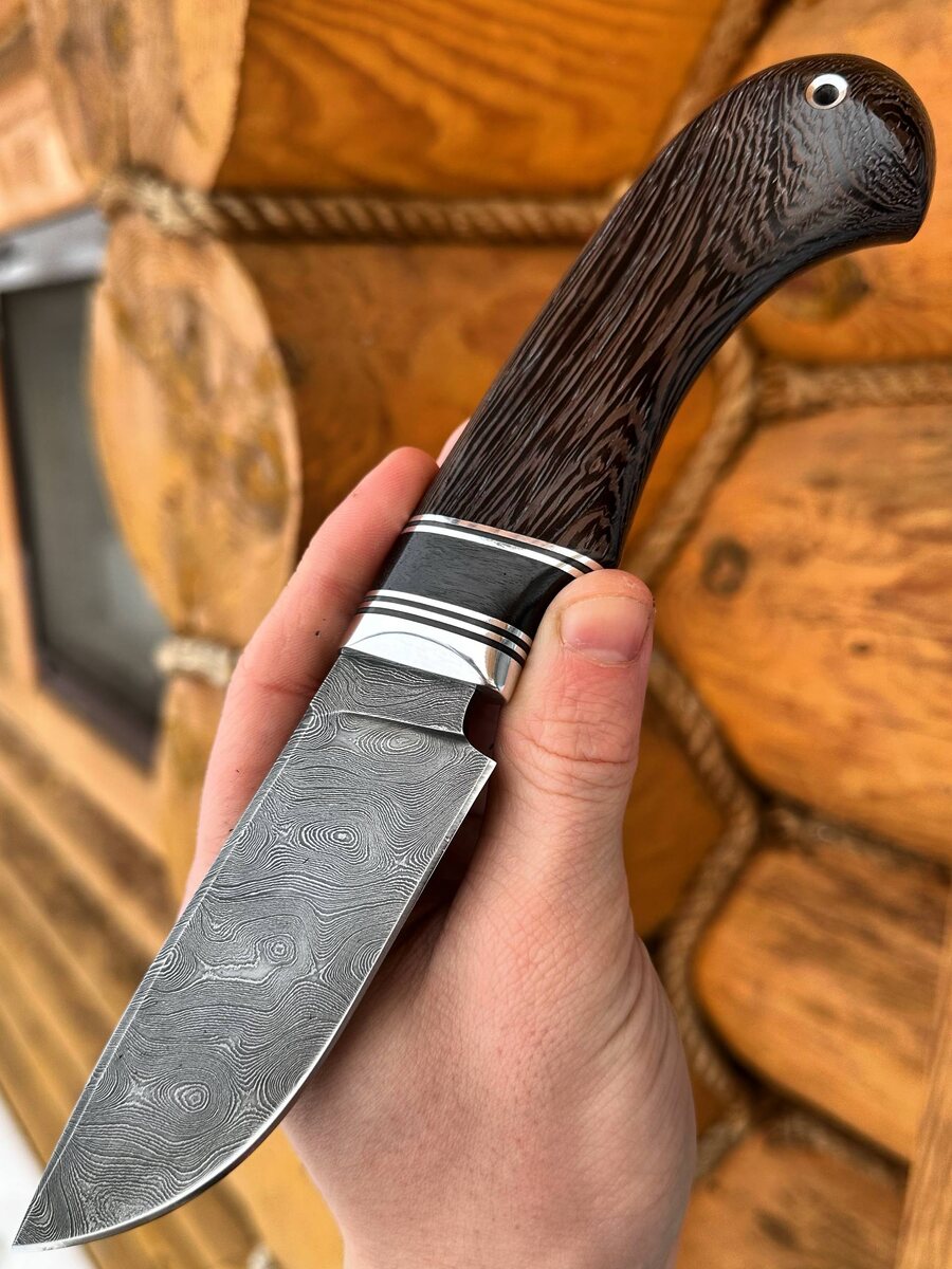 ! Крученая дамасская сталь (950 слоев, у10а, шх15, ХВГ), твёрдость 62 HRC — это сочетание прочности, остроты и долговечности. Прямые спуски от обуха, фальшлезвие, бритвенная заточка — нож легко справится с разделкой, снятием шкуры и любыми бытовыми задачами. Рукоять из венге — благородное дерево, устойчивое к влаге и повреждениям. ✔️ Компактный, удобный, без лишнего пафоса — «Ловчий» разрабатывался как профессиональный шкуросъемный нож для охотников, но стал любимцем не только на охоте и рыбалке, но и в быту. ✔️ Идеален в подарок — для мужчины, который ценит ручную работу и надёжность. Цена по акции — 9.593 руб. (Обычная цена — 11.288 руб.) В комплекте — ножны из натуральной кожи. *Можем изготовить формованные ножны из кожи растительного дубления — доплата 8 000 руб.* 🔸 Закажите прямо сейчас: @Nazarklinokbot | WhatsApp/Viber: +7 910 134-38-31 — #кузницаназарова #ручнойнож #дамаск #охотничьийнож #подарокмужчине #нождляохоты #эксклюзивныйнож #ножизвенге #handmadeknife #nazarklinok