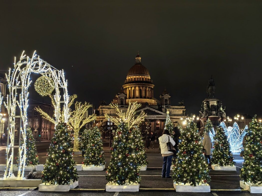 Новогодние украшения в городе уберут к 22 января, а значит можно пройтись по любимым местам и полюбоваться красотой! Если честно, в праздники я всю эту красотищу видела только мельком, мимоходом и в спешке. И хотя праздничные дни уже позади, еще есть время наверстать упущенное. Прогуляюсь и поделюсь с вами фотографиями. Если будете в этом городе зимой, обязательно сюда приходите (в следующем году эти украшения снова будут на своих местах). 1. Сказочный новогодний сад у Исаакиевского собора По-настоящему волшебное место! Уже второй год подряд Новый год я встречаю именно здесь. Невский проспект перекрыт, полно полиции, толпы людей...Идти на Дворцовую площадь ну вообще не с руки. А вот эта локация - прекрасное место) Вид на величественный собор, светящийся фонтан, переливающиеся огнями арки, горящие белые лотосы...И, конечно же, обилие украшенных елочек. Рядом с Исаакиевским собором есть небольшой сквер, где украшена уже елка побольше и совсем рядом каналы и мостики, которые тоже пестрят