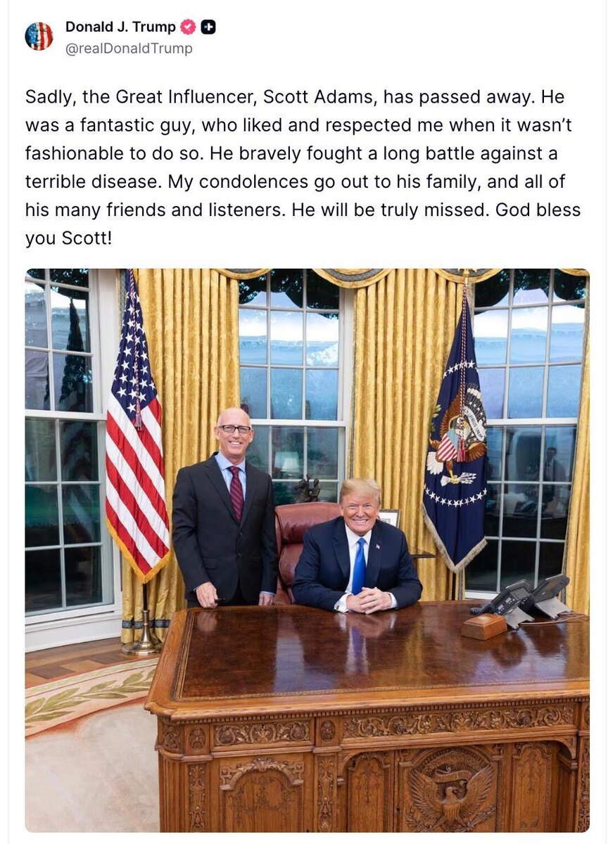 Trump mourns the loss of Scott Adams