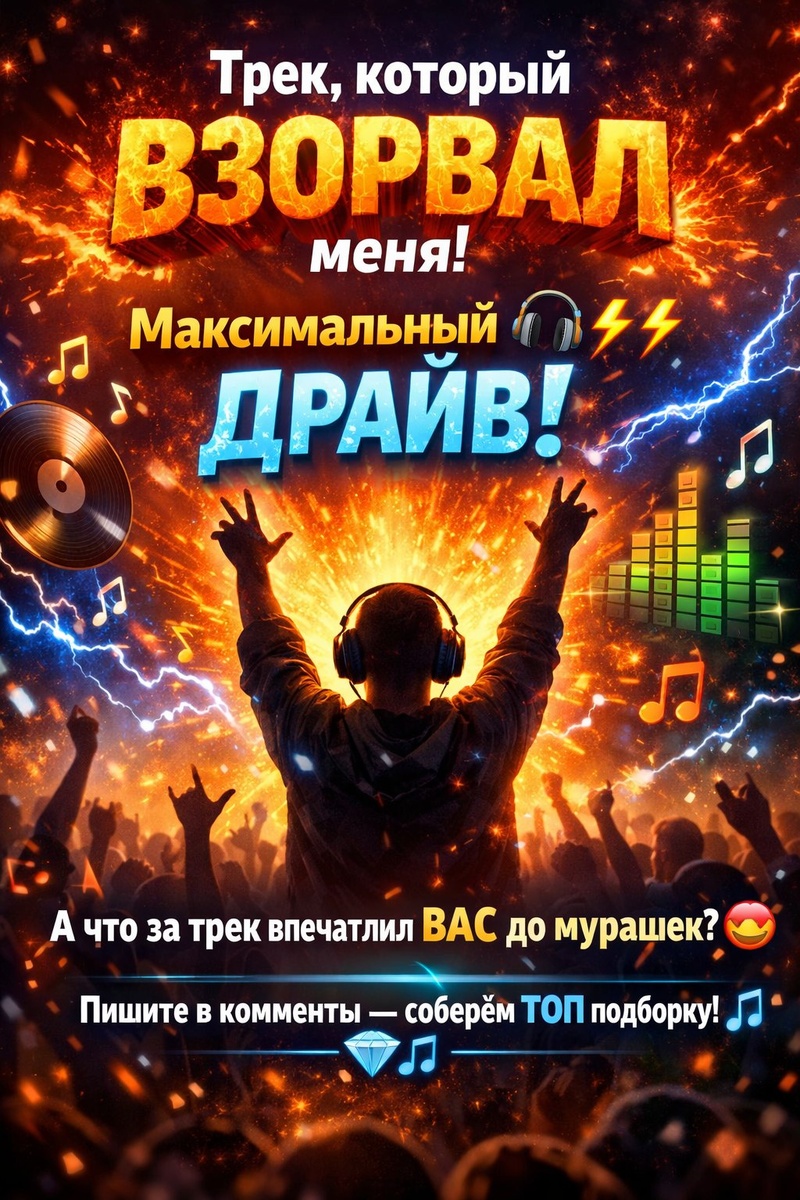 🔥 Сегодня нашёл трек, который просто разорвал меня эмоционально — поймал максимальный драйв и те самые мурашки 😮💨⚡️ Не смог не поделиться с вами — слушайте и ловите вайб 🎧🚀 А какой трек за последнюю неделю впечатлил вас до мурашек? 😍👇 Кидайте в комменты — соберём топовую подборку 💎🎶 P.S. трек будет в комментах и жду ваши