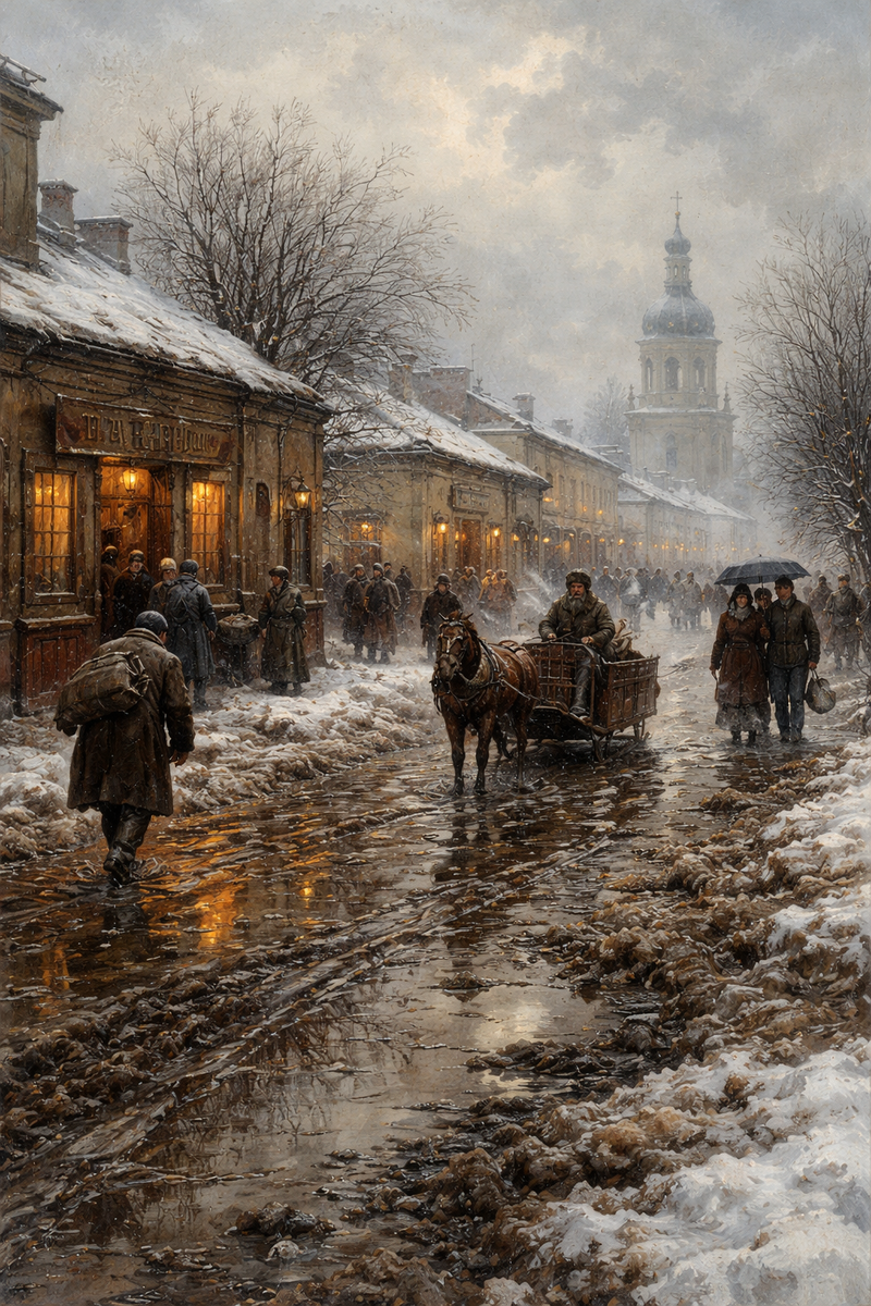 В тот день, четырнадцатого февраля, в уездном городе стояла слякотная зима, и снег, казалось, таял не от тепла, а от стыда за собственную неуместность.