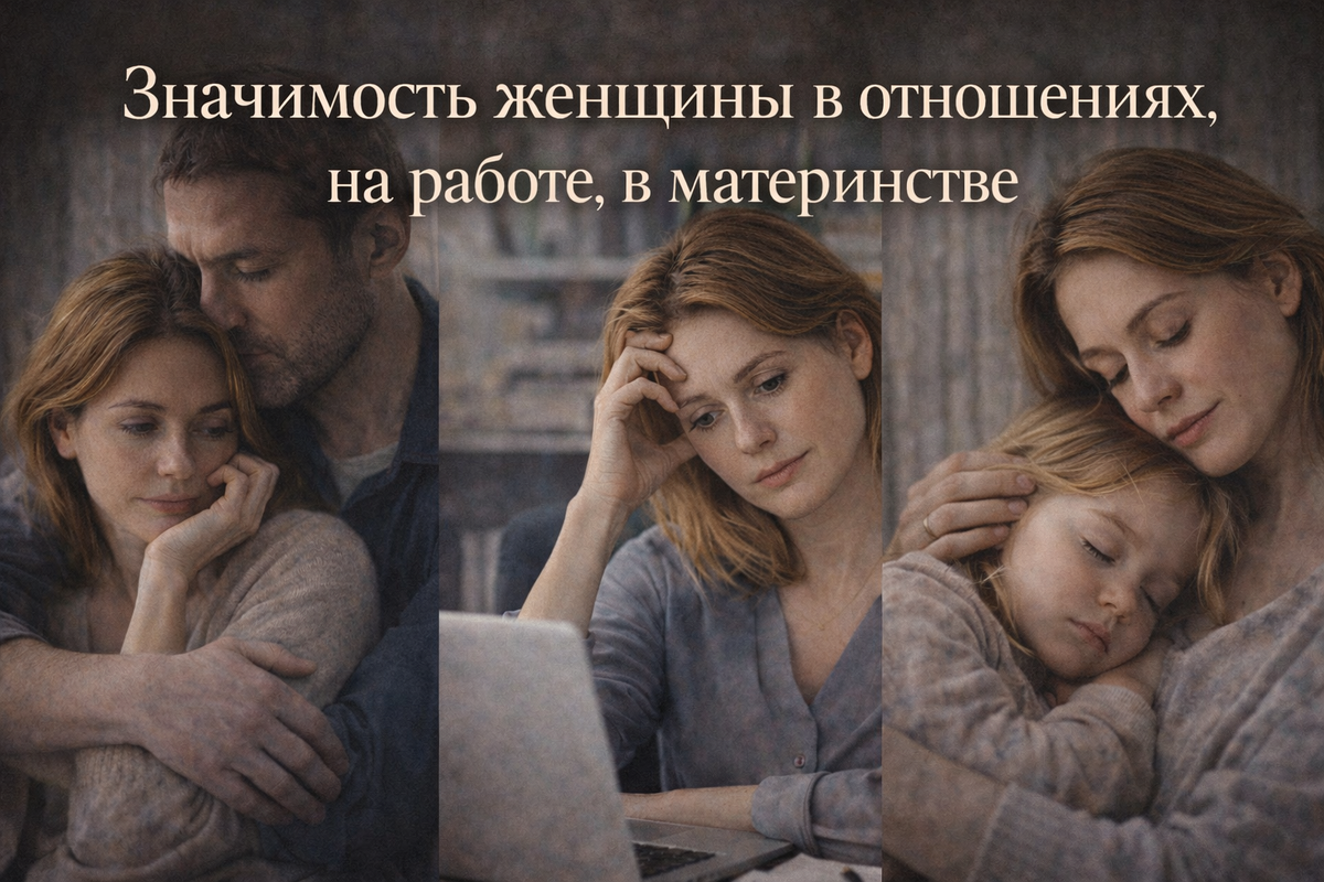 1. Значимость женщины в отношениях. История честно и без глянца: В отношениях я всё время стараюсь, сглаживаю острые углы, подстраиваюсь под мужа и его желания. Мама своим примером научила меня быть: удобной и понимающей. Она легко угадывала настроение отца, чаще молчала в ответ на его недовольство, делала много, но этого отец не замечал. Когда я однажды ее спросила – почему ты не отвечаешь на его претензии, она отворачивала от меня лицо и тихо шептала, что любит его. Мне кажется, что она перепутала любовь с полезностью. А сейчас я замечаю, что я такая же, как она. Когда мой муж чем-то недоволен, первое, что мне приходит в голову – что это я виновата и что со мной что-то не так. Комментарий психолога Когда значимость становится основой отношений, любовь превращается в обслуживание. Партнёр не чувствует рядом живого человека, он чувствует функцию. А женщина со временем чувствует злость и пустоту. 2. Значимость женщины в материнстве История честно и без глянца: Мысль о том, что я плохая
