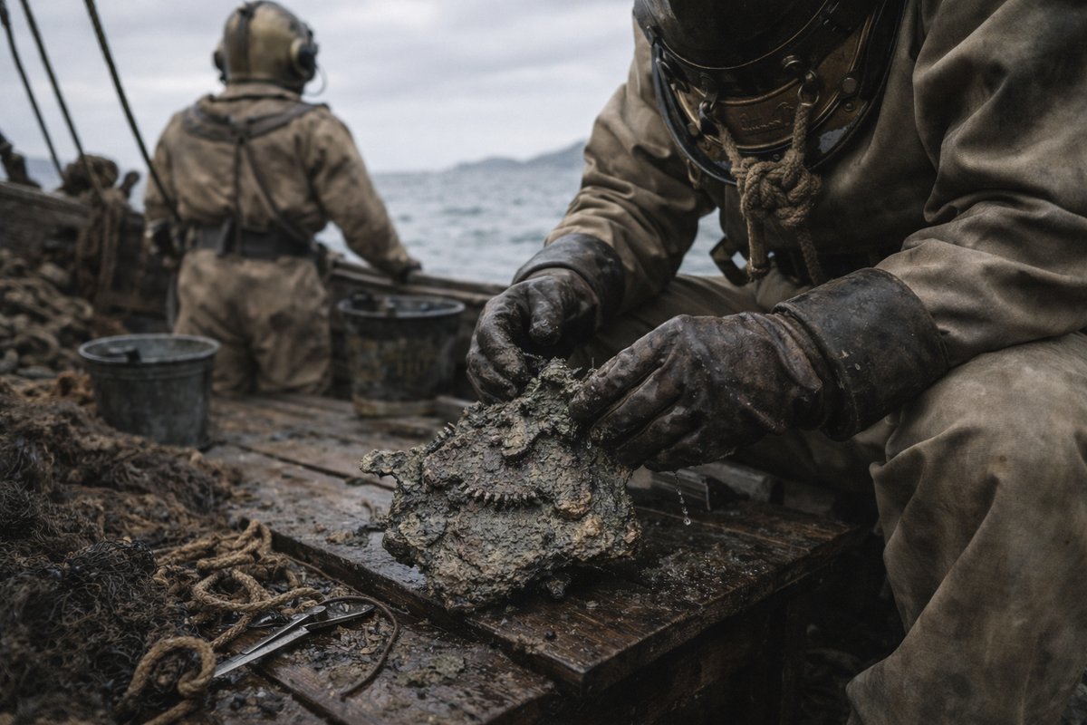 Проблема: мы не знаем, кто построил Антикитерский механизм. Имен нет. Только косвенные зацепки.