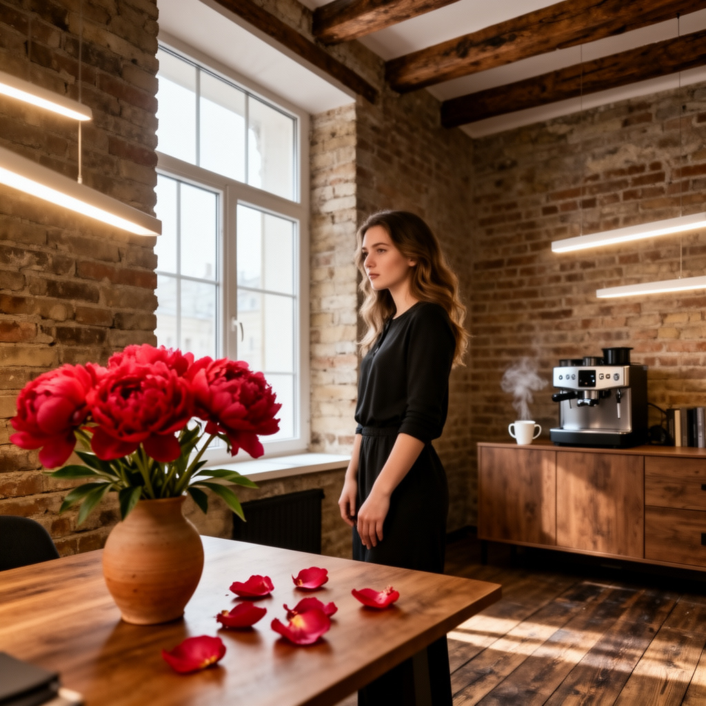София стояла у панорамного окна своего нового, совместного с Кириллом офиса. Не в небоскребе из стекла и стали, а в отреставрированном особняке, где кирпичные стены соседствовали с современным светом, а запах старого дерева смешивался с ароматом свежесваренного кофе. На ее столе в глиняной вазе стоял букет живых пионов — алых, неидеальных, осыпавших лепестки на стол.