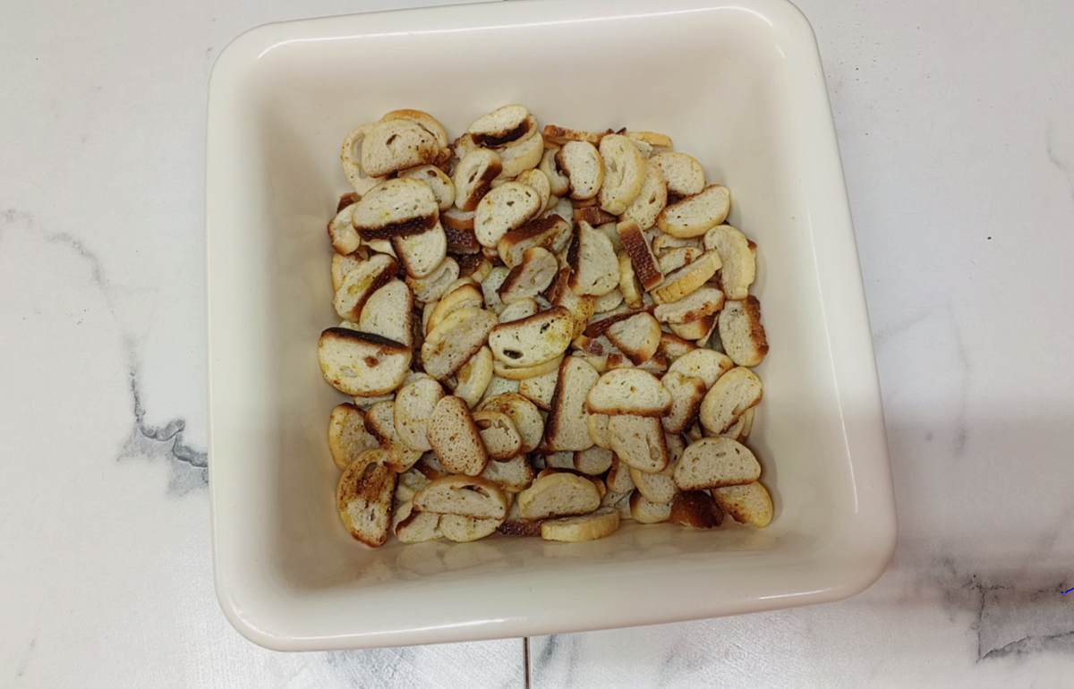 Сухарики очень часто готовятся у нас в семье: к борщу, супу, салату... да и просто так похрустеть. Сегодня я решила приготовить сухарики немного по-другому. За основу взяла тесто на пшеничной закваске 70% влажности для французской булки, но можно взять и дрожжевое тесто. Но я решила не формировать французскую булку, а попробовать сформировать тонкие жгуты, выпечь их и именно из них приготовить сухарики, чтобы сухарики были не только вкусными, но и красивыми. Вот из такого количества теста (100 г закваски, 250 г воды, 20 г сахара, 20 г масла, 12 г соли, муки 500 г, итого 902 г теста) у меня получилось 12 жгутов (тонких батонов). Естественно, они выпекались значительно быстрее, чем выпекалась бы французская булка, т.е. не 25 минут при 240-220°С, а 15. После их остывания, они были тонко нарезаны и высушены в духовке в течение 15 минут при температуре 120°С. Нарезать батончики следует сразу же после остывания. Для ароматизации сухариков я использовала специи "на глаз" - по немногу: сушен