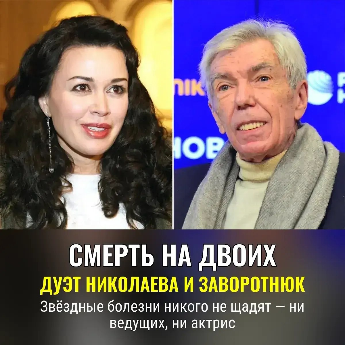Анастасия Заворотнюк по очереди прошли через испытание, которое не выдерживают даже звёзды. 🎭 Николаев, признавшийся и в похмельях, и в "звездной болезни", справился с отстранением от эфира — но не с раком кишечника. О диагнозе молчал, работал до последнего, улыбался экрану. В это же время Заворотнюк — невероятная, энергичная, вечная «няня», весь год списывала мучительные симптомы на усталость, а потом услышала страшный приговор: глиобластома мозга. Шанс был — в Германии, операция, долгие шесть лет на поддержке, борьба и кома. Легендарный тандем — ярче только судьба: похоронены оба на Троекуровском кладбище, ушли после долгой стойкой битвы с болезнью, перед которой меркнет даже телевизионный свет. 🦠🕯️ Узнать подробности