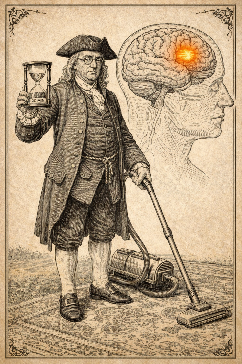 От дневника американского просветителя до МРТ-исследований мозга: почему убираться «всего 20 минут» — это не лайфхак, а гениальная стратегия по обману нашего сопротивляющегося разума.