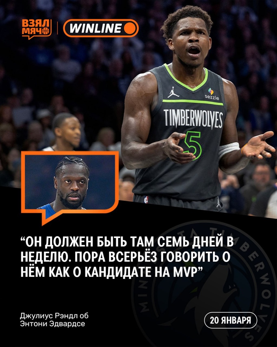 🗣 «Он должен быть там семь дней в неделю. Хватит с нами играться. И вообще, пора всерьёз говорить о нём как о кандидате на MVP. Вы видели его последний матч?». Энт не попал в стартовый состав на Матч всех звёзд по голосованию, а в среднем по сезону он набирает 29,6 очка (5-й в лиге), собирает 4,9 подбора и отдаёт 3,7 передачи. Заслужил ли Эдвардс старт Матча всех звёзд и разговоры про MVP? Пишите ваше мнение в комментариях 👇 🏀 ПОДПИШИСЬ — ЗДЕСЬ ЖИВЁТ БАСКЕТБОЛ!