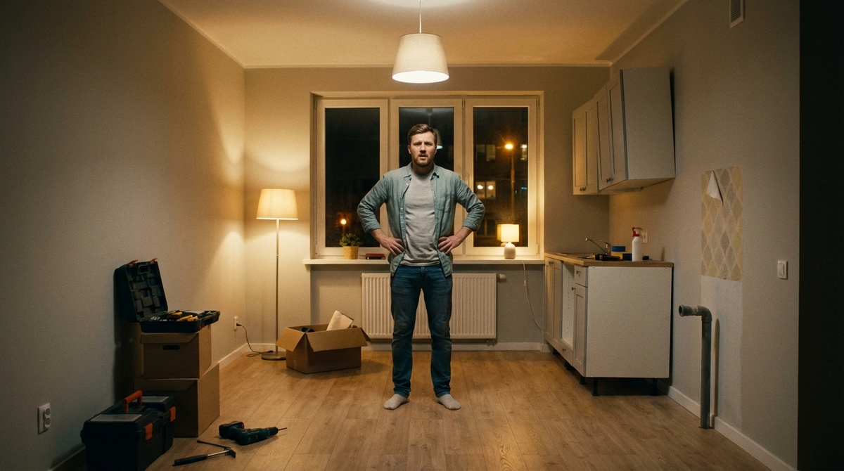 Определитесь со стилем. И ни разу не подумайте, как вы реально будете жить в этой квартире вечером. Где будете бросать сумку, куда тянуться за выключателем, как ходить в темноте в туалет. Через месяц поймёте, что интерьер красивый, а быт — нервный. Если по СНиПу проходит — значит удобно.