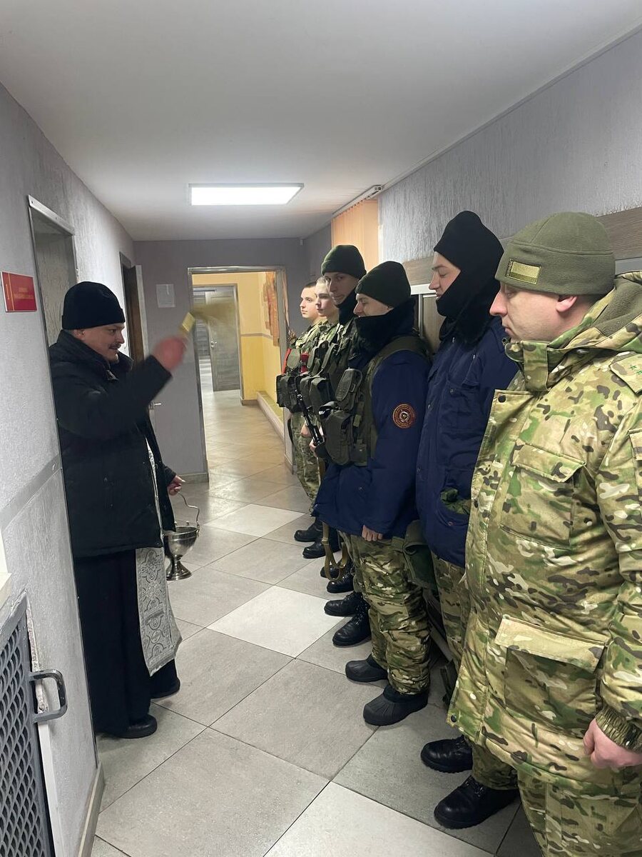 стрелковый батальон в посёлке Новосады. В ходе визита священник совершил краткий молебен и окропил святой водой личный состав батальона и казарменные помещения, даруя военнослужащим духовное укрепление и благословение. По завершении богослужебного действия отец Сергий провёл беседу о вере Христовой, в которой рассказал о основах православного мировоззрения, значении молитвы и духовной стойкости в служении Отечеству.