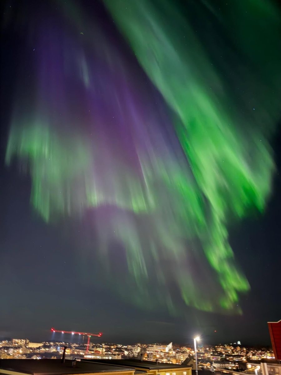 В Норвегии довольно много туристов которые едут за Северным сиянием. Как правило базовой точкой выбирают город Тромсе, что далеко на севере Норвегии, за полярным кругом. Вот фото моей приятельницы из Тромсе: