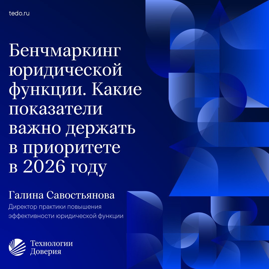 функции. Какие показатели важно держать в приоритете в 2026 году». На основе результатов исследования «Бенчмаркинг юридической функции — 2025» эксперт расскажет, чем итоги 2025 года отличаются от результатов 2024 года и какие показатели нужно держать под контролем в этом году. В фокусе внимания также: 🔹 Актуальные направления деятельности для in-house-юристов 🔹 Объем работы юридического департамента 🔹 Общие цифры по расходам на юридическую функцию: структура и медианные значения 2025/2024 ➡️ Подробнее о вебинаре #ГдеТеДо