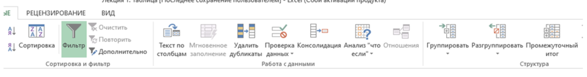 Во вкладке Данные, пожалуй, самыми часто используемым являются функции Фильтр, который позволяет фильтровать соответствующие данные, а также Сортировка. Однако, есть ещё три полезные функции: