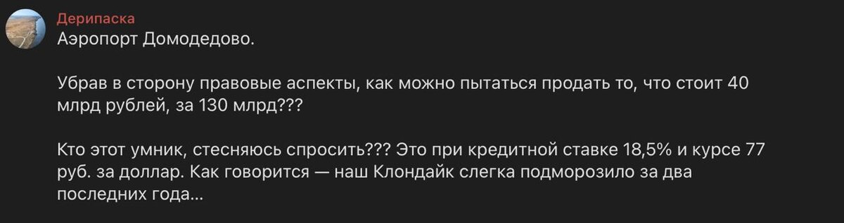 🗣 Дерипаска не понимает, почему Домодедово стоит так дорого
