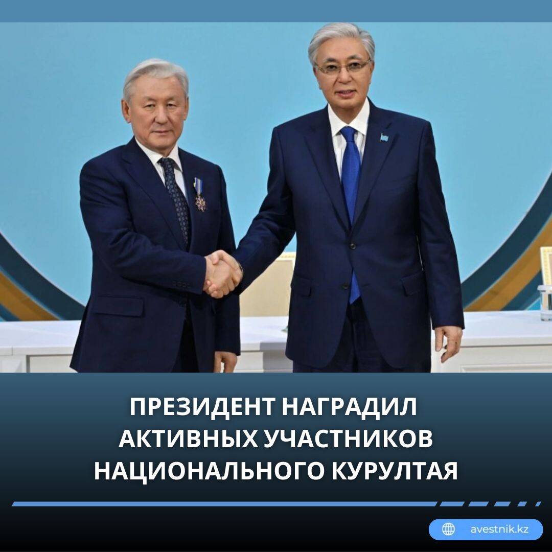 🏅 Президент вручил государственные награды группе граждан, активно участвовавших в деятельности Национального курултая и внесших важную лепту в успешную реализацию реформ, передает Kazinform со ссылкой на Акорду. 📜 Указом «О награждении государственными наградами Республики Казахстан» Глава государства постановил: 1. За большой вклад в социально-экономическое и общественное развитие страны наградить: 🎖️ орденом «Барыс» I степени Имандосова Самурата Жумановича — ветерана труда, Кызылординская область Перуашева Азата Турлыбекулы — председателя ОО «Демократическая партия Казахстана «Ақ жол», город Астана; 🎖️ орденом «Барыс» II степени Ақылбая Серіка Байсеитұлы — председателя РОО «Казахстанский союз юристов», город Астана Кулекеева Жаксыбека Абдрахметовича — научного руководителя ТОО «Центр исследований прикладной экономики», город Астана Турлыханова Даулета Болатовича — депутата Мажилиса Парламента; 🎖️ орденом «Барыс» III степени Бектурганова Серика Чингисовича — заместителя председ