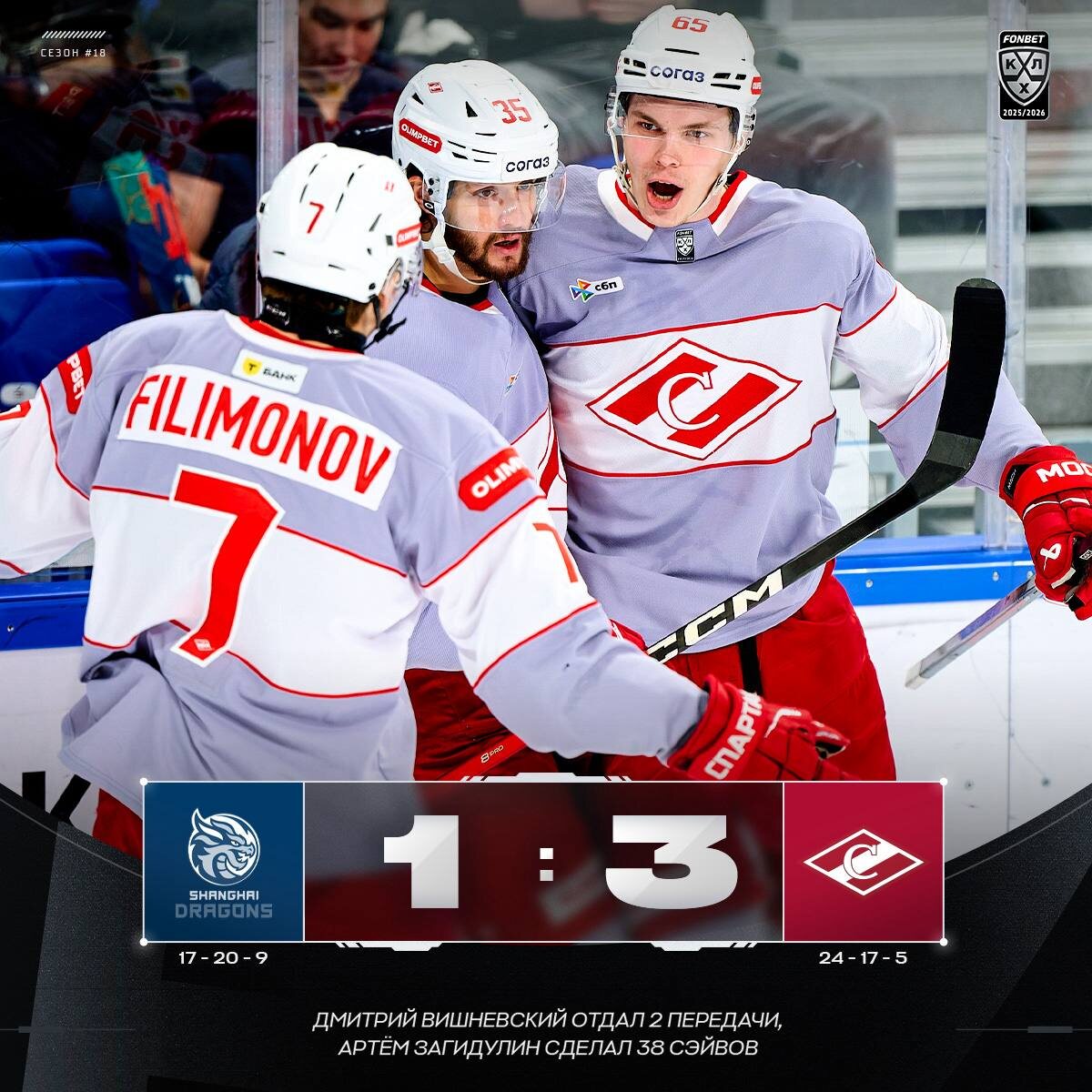 🔴 «Спартак» в четвёртый раз в сезоне обыгрывает «Шанхайских Драконов»!