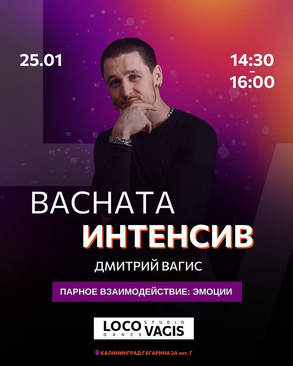 ! Чувственная бачата❤️🔥 Именно о ней будет интенсив от ДМИТРИЯ ВАГИСА! Уже в это воскресенье 1.5 часа уделим парному взаимодействию, эмоциональному коннекту в паре и бачате, которую действительно хочется танцевать✨ А ТАКЖЕ ПРИЯТНЫЙ БОНУС для всех участников интенсива: 2 часа практики в ПОДАРОК!🎁 Можно будет остаться и закрепить полученный материал💪🏻 Ну что, готовы почувствовать? 🗓️ 25 января 🕑 14:30 - 16:00 + практика с 16:00 до 18:00 💰 1000₽ (при записи ЗАРАНЕЕ, день в день будет дороже) Уровень: общий Бронь мест через @LocoVagisAdmin 📝 📍Гагарина 2А лит.Г
