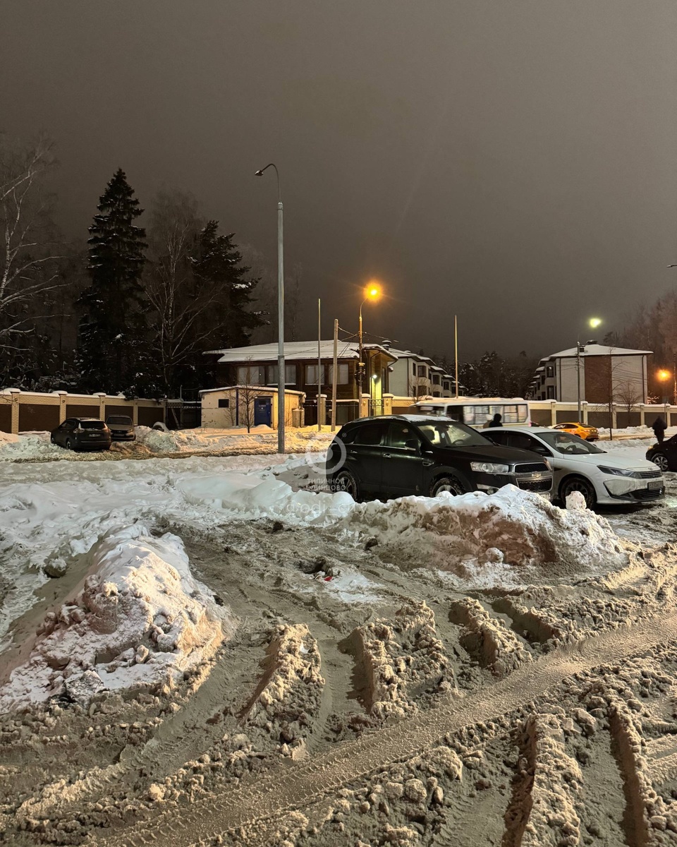 Парковка у станции МЦД «Сколково» (со стороны Трехгорки) почти полностью покрыта снежной кашей
