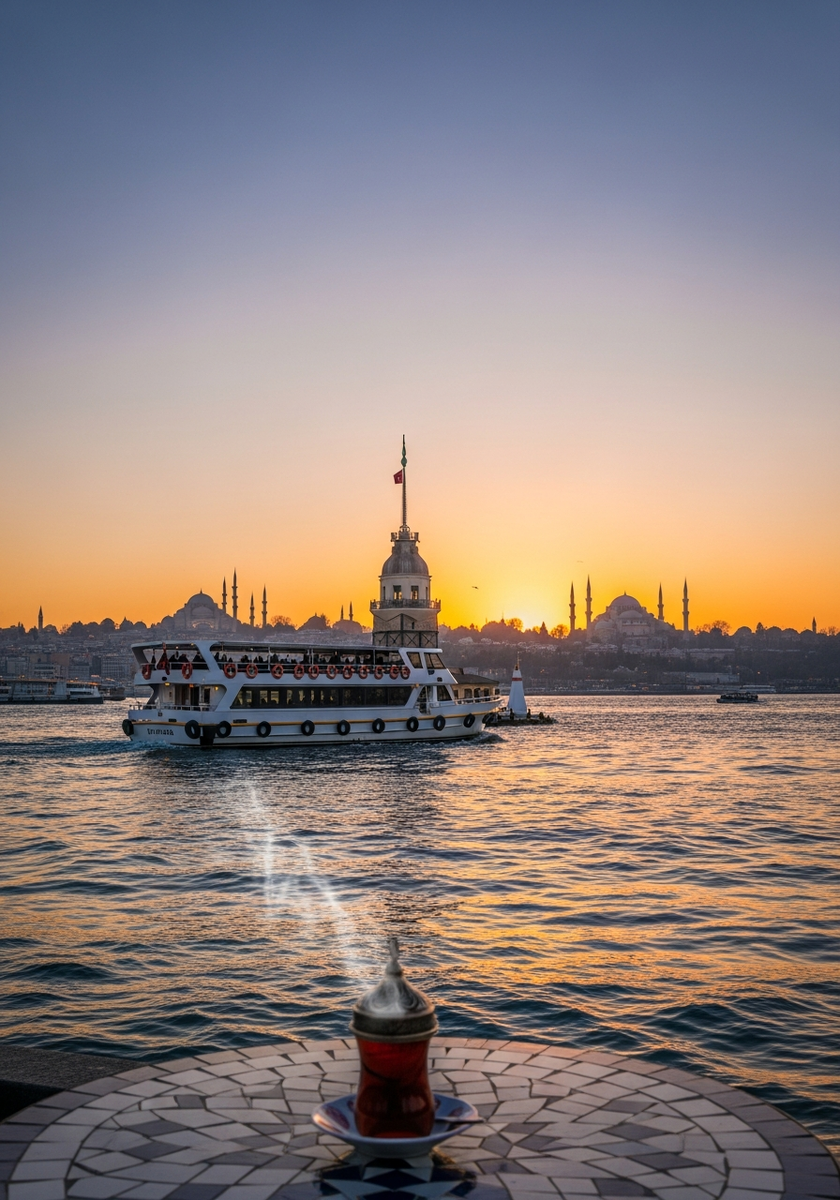 Во время прогулки вы увидите дворцы Топкапы и Долмабахче, крепость Румели Хисары, Галатскую и Девичью башни. Проплывёте под величественными мостами, соединяющими континенты. Вечерние круизы особенно романтичны — город загорается огнями, а вода отражает сияние огней набережных.