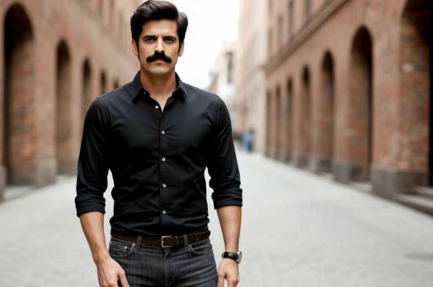 Высокий, с аккуратными усами, в черной рубашке и узких джинсах. Улыбнулся, открыто, по-мальчишески.