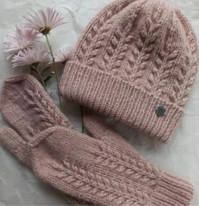Красивый узор для шапки и варежек спицами.
