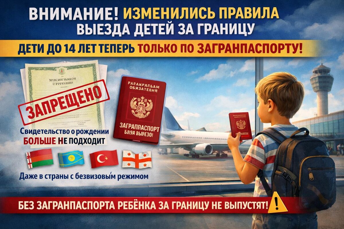 С 20 января дети до 14 лет могут выезжать из России за границу только по загранпаспорту. Использовать свидетельство о рождении больше нельзя, даже при поездках в страны с безвизовым режимом.