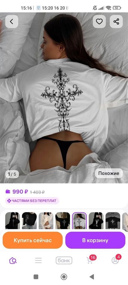 Приспичило мне тут купить лонг с дырочками для большого пальца (не знаю как это правильно назвать). Бывает такое — вот надо и всё. И вот ты сидишь 3 часа на ВБ, листая абсолютно однотипные карточки товаров в надежде найти "то самое". Но в этот раз ВБ меня реально удивил. Наверное, все уже пошутили на тему того, что когда ищешь лосины на маркетплейсах — самое главное прорваться через лес поп. Нет, серьезно, миллион приколов и мемов на эту тему, но тайну того, зачем моделей фоткают в раскаряку на карточках таких товаров, мне так никто и не выдал). Но тут хотя бы все привычно и ничего удивительного. Удивительно было увидеть на заглавной карточке товара лонгслива попу в стринах, занимающую места примерно столько же сколько и лонгслив. Причем трусы какие-то странные. Ощущение, что там что-то нафотошопили. И вот зачем мне эта попа, когда я ищу лонгслив.. Попа то красивая, но блин просто зачем? Сексуализируем и объективируем женское тело просто по привычке? Что вы думаете об этом? Поделитесь