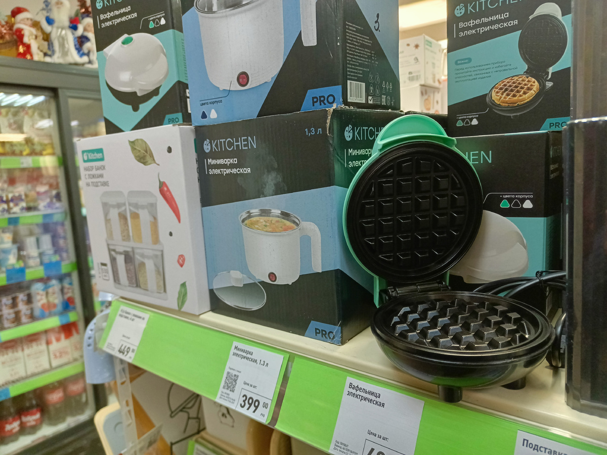 Пожалуй, самый крупный отдел в «Фикс Прайс» — это посудный. Здесь представлен широкий выбор кухонной утвари, и ассортимент регулярно обновляется, особенно перед праздниками. Товары на полках расставлены аккуратно, и я обратила внимание, что если какой-то товар заканчивается, сотрудники немедленно его пополняют. И в этом обзоре, делюсь с вами увиденным в "Фикс Прайс" города Крымск. Керамическая менажница из трёх секций с деревянной ручкой, длина 37,5 см. Белого цвета, поможет украсить любое событие, а еще это превосходный подарок на любой праздник. Секции можно наполнить вашими любимыми соусами для мяса или же налить сладкое варенье и джем для блинов и каш на завтрак. Вафельница электрическая мощностью 350 ватт, предназначенная для приготовления венских и бельгийских вафель. Цена 499 рублей. Электрическая кастрюля объёмом 1,3 литра и мощностью 600 ватт. Удобная крышка обеспечивает герметичность во время приготовления. Компактный размер и современный дизайн позволяют удобно разместить пр