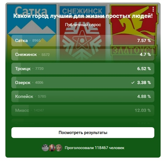 В 2018 году на областных ресурсах запустили голосовалку "Лучший город для жизни простых людей" 7 простых городов указали и 2 непростых : Озерск и Снежинск. Конечно же, Челябинск оказался в победителях. Ну хотя бы потому что население его самое большое. Второй-второй по населению Магнитогорск. А что Озерск?