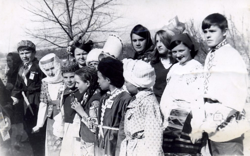 Фото на память перед поездкой на районный смотр-конкурс художественной самодеятельности: «Пятнадцать республик, пятнадцать сестёр».