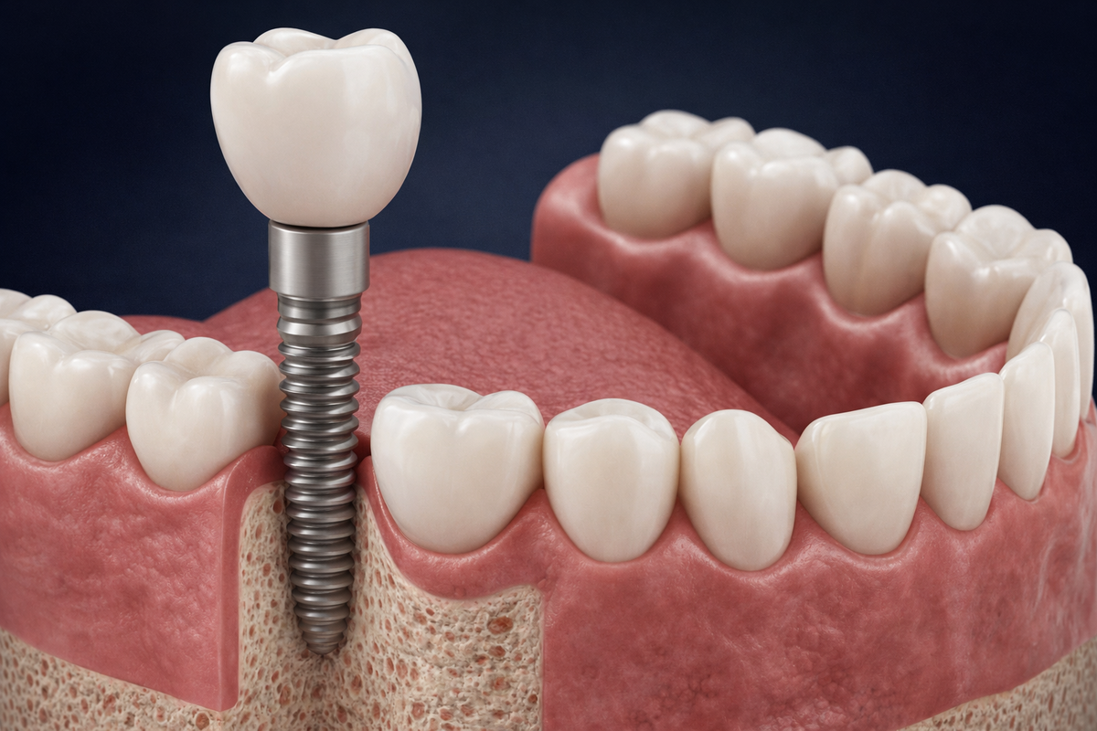И всегда ли имплантация — лучший вариант по сравнению с альтернативным протезированием? Разберёмся честно и по делу: кому имплантация действительно подходит, а в каких случаях разумнее выбрать протезирование зубов или поэтапное лечение. Зубной имплант - это титановая конструкция, которая устанавливается в костную ткань челюсти и служит опорой для коронки или протеза. При правильном планировании имплантация позволяет: Но в отличие от съёмных протезов или мостовидных конструкций, имплантация требует строгого соответствия ряду клинических параметров. Именно поэтому р
