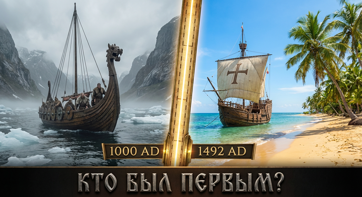 12 октября 1492 года. Христофор Колумб сходит на берег Нового Света. Три каравеллы, флаги, историческая встреча с «индейцами». Эту картинку нам вбивали в голову со школьной скамьи. Она стала символом эпохи Великих географических открытий. А что, если я скажу вам, что вся эта история — лишь половина правды? Что за 500 лет до Колумба на американскую землю уже ступала нога европейца? Бородатого, свирепого и приплывшего не за золотом, а в поисках лучшей жизни. Да, речь о викингах. Так почему же все лавры достались Колумбу, а о подвиге скандинавских мореходов история предпочла умолчать? 1. Случайность, которая изменила карту История этого открытия — не грандиозный проект, а цепь случайностей и невероятного упрямства. Всё началось с Эрика Рыжего — буйного норвежца, которого за убийство изгнали сначала из Норвегии, а потом и из Исландии. В поисках нового дома он открыл Гренландию. Его сын, Лейф Эрикссон, пошёл ещё дальше. Примерно в 1000 году, возвращаясь из Норвегии в Гренландию, его корабль