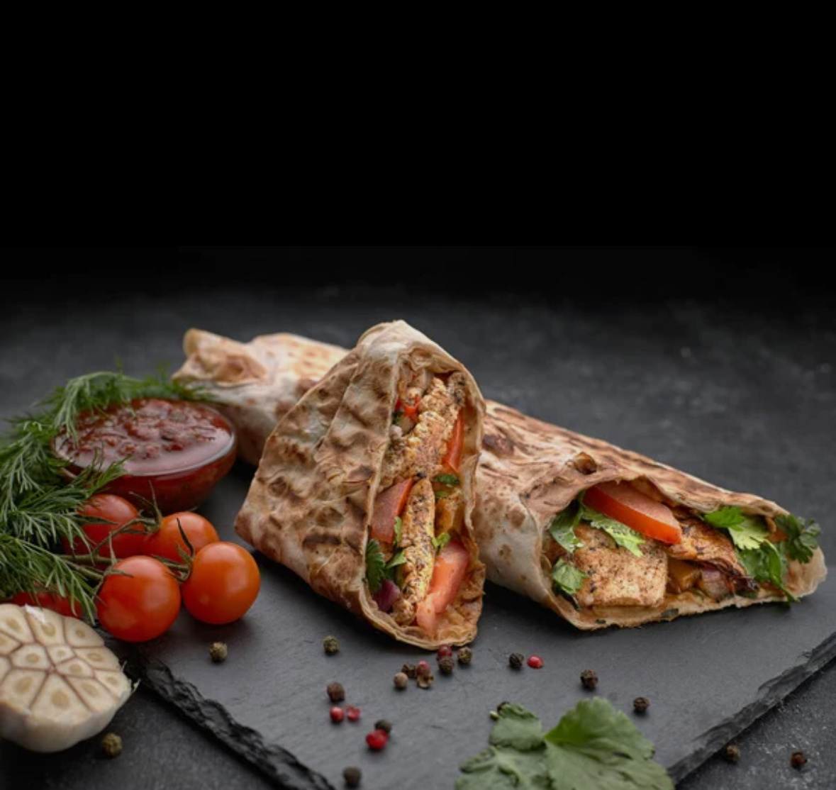 • Компоновка: в лаваш кладут мясо, овощи, соусы, иногда картофель фри или рис, затем туго заворачивают и прогревают на гриле или прессуют.
