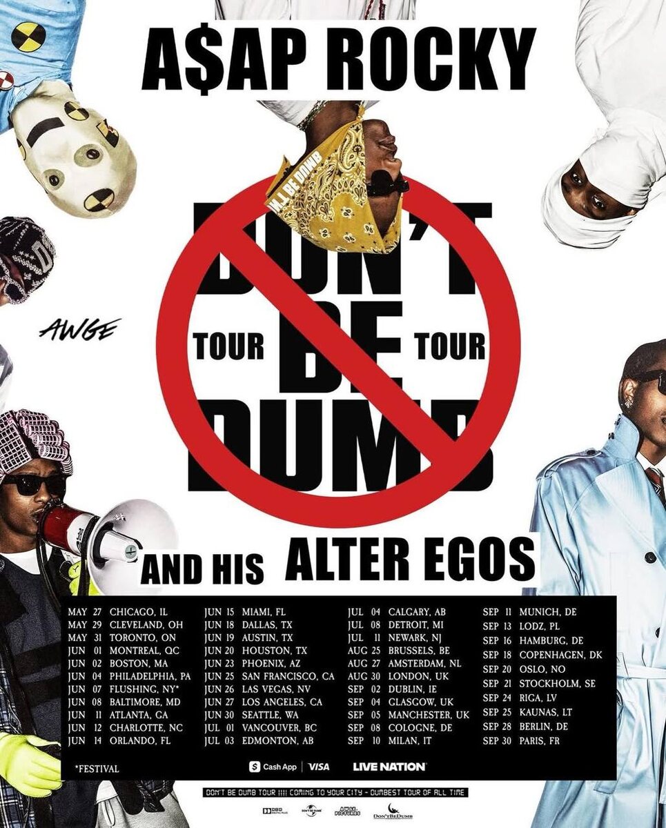🔥 A$AP ROCKY ЕДЕТ В МИРОВОЙ ТУР! После восьмилетнего перерыва и релиза альбома «Don't Be Dumb» рэпер наконец отправляется в долгожданное мировое турне. Тур стартует в мае с городов Северной Америки. В Россию когда? 🤔 💀 FML MATTERS