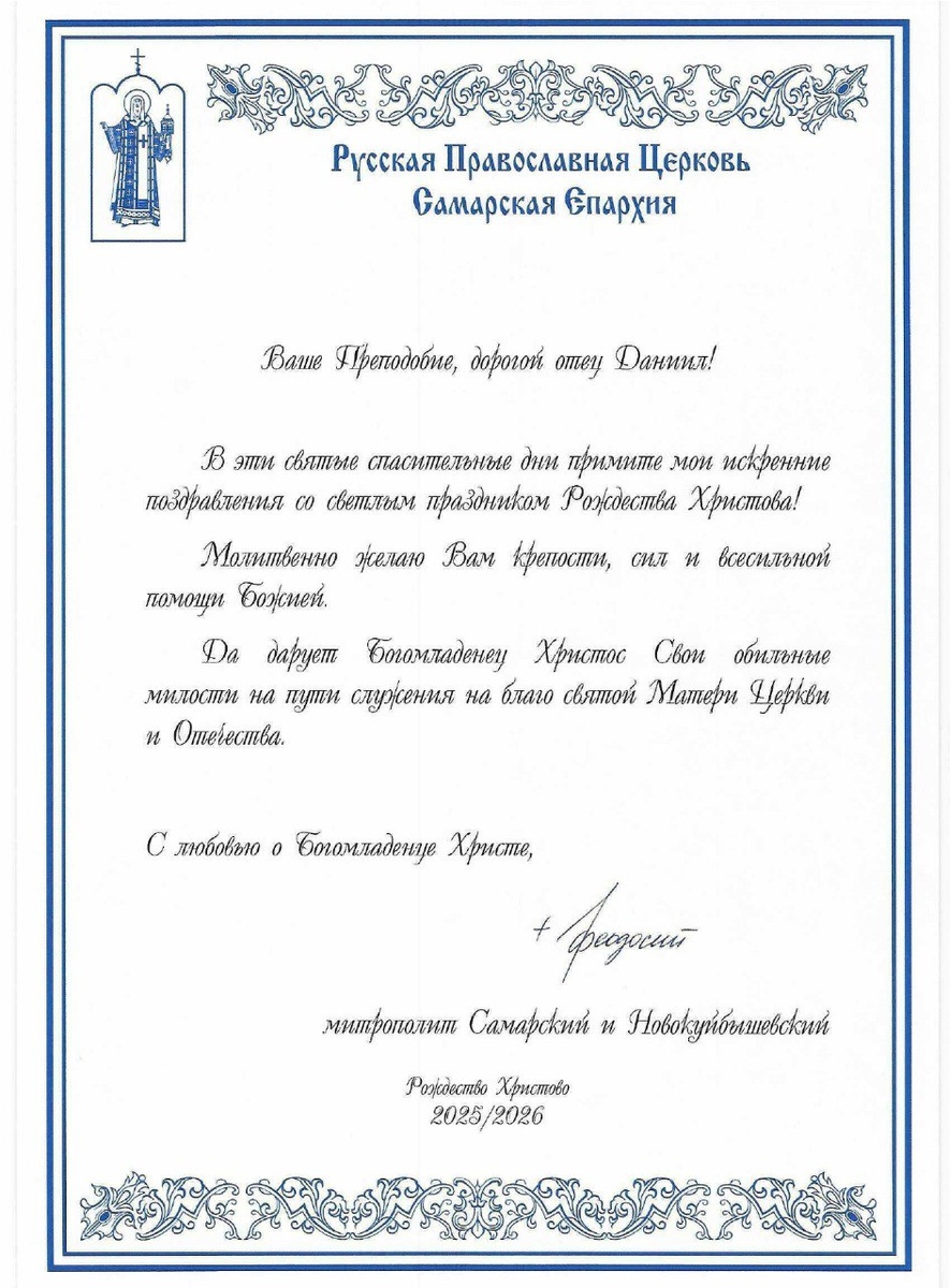 В адрес главы фонда диакона Даниила Булычева пришли поздравительные письма с Рождеством Христовым. Мы хотели бы поделиться с вами нашей радостью от добрых пожеланий. Благодарим епархиальных архиереев, приславших поздравления, за соработничество с фондом на благо Русской Православной Церкви!