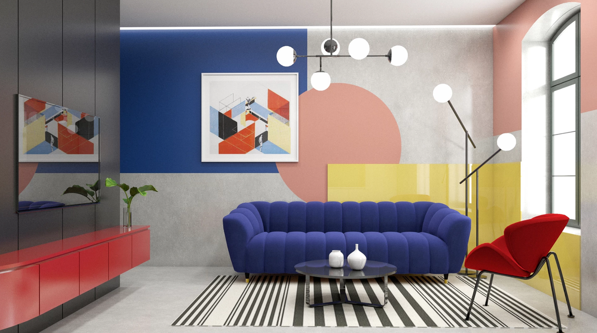 Яркими акцентами являются чистый желтый, красный, синий и зеленый.