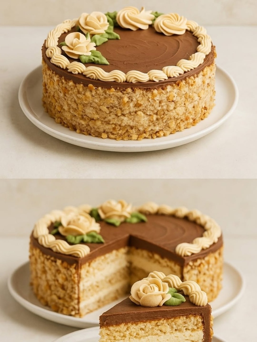 Нежный, хрустящий и воздушный торт на основе белковых коржей с орехами и масляного крема