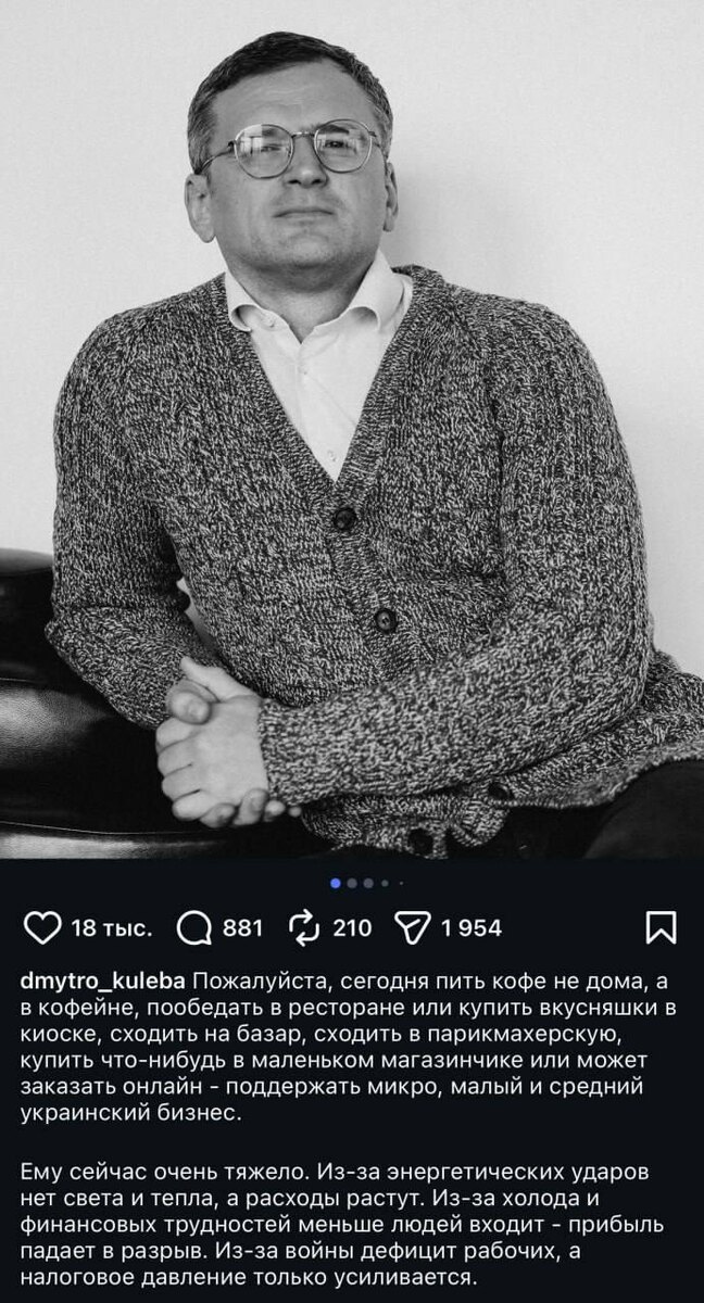 Экс-глава МИД Кулеба призвал украинцев сходить в кафе или пообедать в ресторане, чтобы поддержать малый бизнес